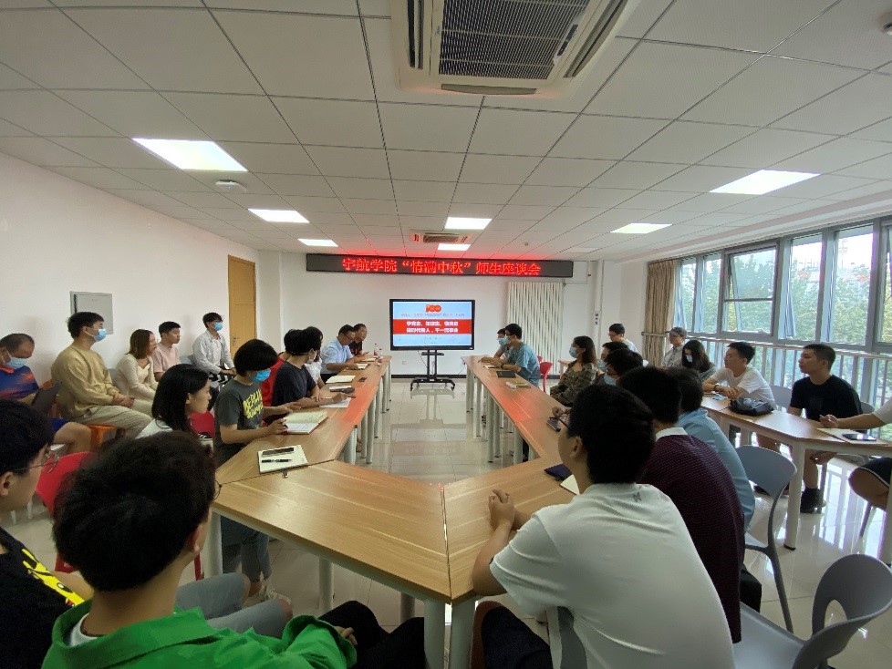 同时,学院召开了“情满中秋”师生座谈会,党委书记龙腾、院长助理宋晓东、学院各年级学生代表、课题学生代表等40余人参加了此次座谈会。龙腾首先以“学党史、知校史、懂院史,做时代新人,做一流事业”为题作了专题讲座,简要介绍了百年党史、红色校史,跟与会同学详细介绍了学院科研团队、人才培养等情况,帮助学生更好了解学院,并以祁载康、胡海岩、邹汝平为例,鼓励学生争做先锋模范,永远奋斗。随后和与会同学开展座谈交流,对同学们提出的专业分流、课程设置、双创、就业、个人发展、学生活动等问题进行一一解答,并表示学院将进一步召开会议专题讨论,并结合党史学习教育,纳入学院党委“我为群众办实事”活动内容予以响应落实。最后表达了学院对学生健康成长的祝福以及同学们星辰大海,追逐梦想的期许和祝愿,并祝愿全体学生中秋节快乐。